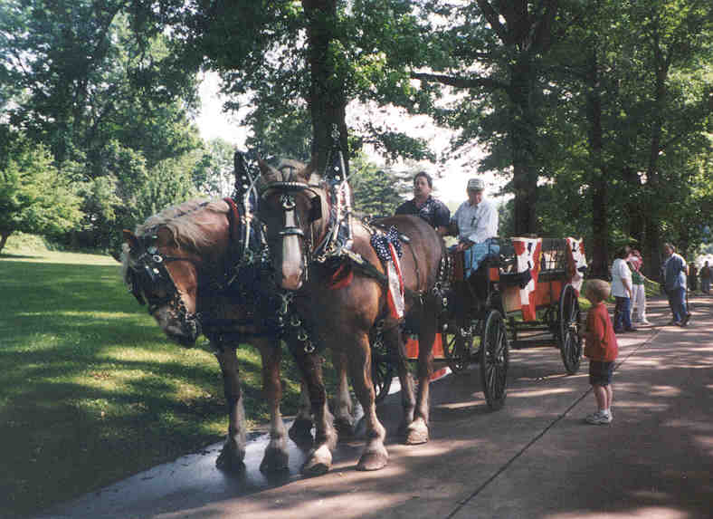 Come celebrate the fourth of July with a bang and a ride on the wagonette. All decked out in stars and stripes and ready for the parade route. Our horses love a parade and almost march in time to the bands.